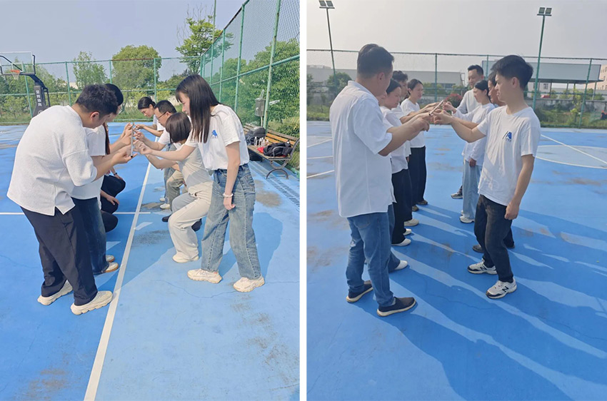 齐眉棍挑战堪称团队默契的试金石,一根细棍需全员用一根手指共同平稳下放,微小的动作偏差都会让挑战功亏一篑。这就像建筑施工中校准每一根承重梁柱,毫厘之差都可能影响整体结构的稳固。从手忙脚乱到有条不紊,团队成员在反复尝试中学会倾听与配合,有人把控速度,有人提醒平衡,有人调整心态,最终将平衡稳稳落地。大家领悟到,耐心是团队的基石,步调一致方能攻克艰难,这也是建筑事业稳步推进的必备要素。