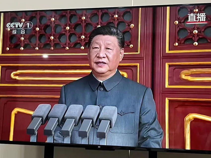 公司二楼会议室里,气氛庄重而热烈。集团总部员工早早到达,满怀期待地等候阅兵式开始。当激昂的国歌声奏响,鲜艳的五星红旗缓缓升起,全场同事们自发起身,齐声高唱国歌,他们的眼神中闪烁着坚定与自豪,满是对祖国的热爱与敬意。这份赤诚与庄重,恰是我们身为建筑人扎根行业的初心——既要以钢筋水泥搭建城市坚实的“物理之基”,更要以家国情怀筑牢团队共有的精神之魂 。